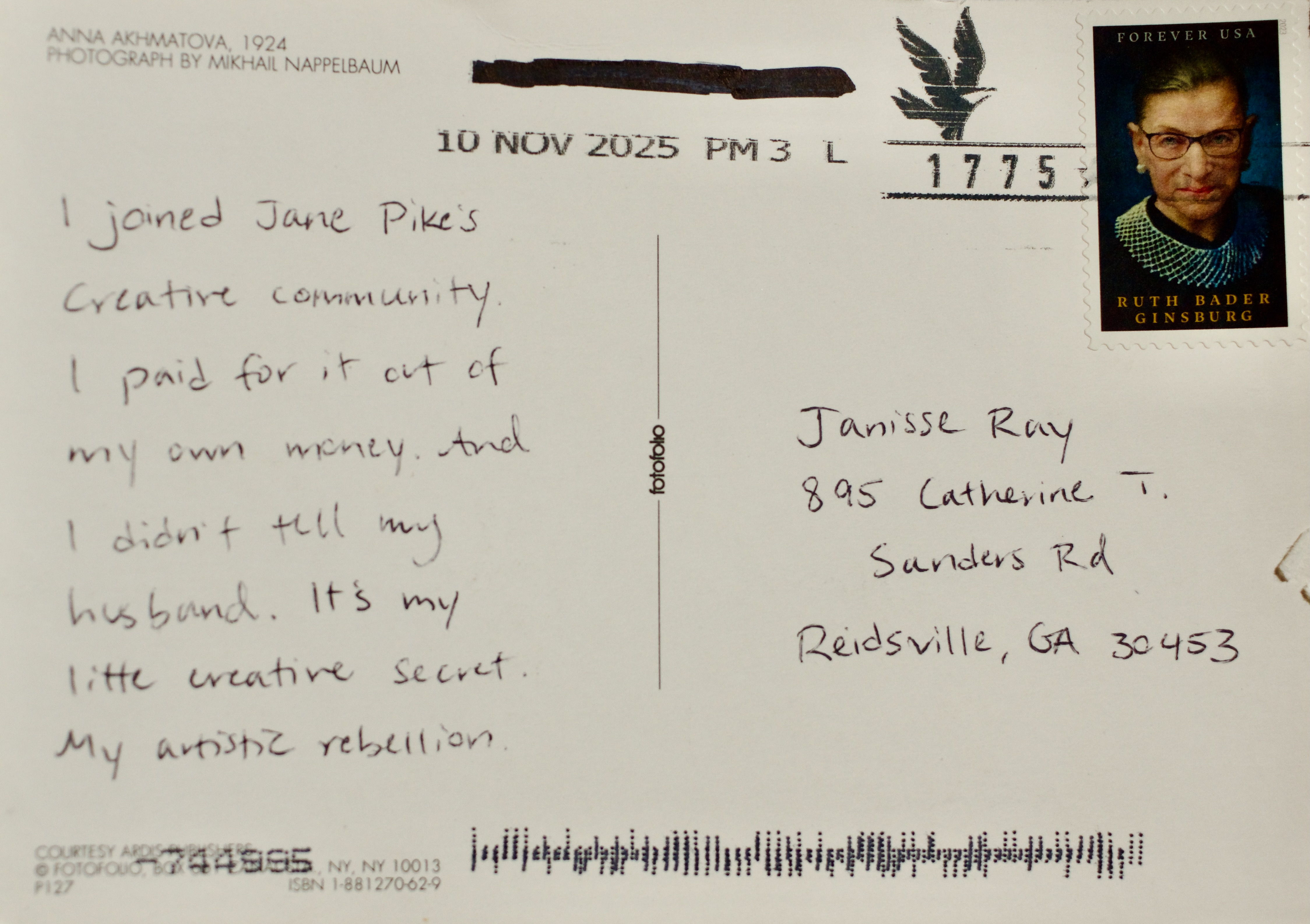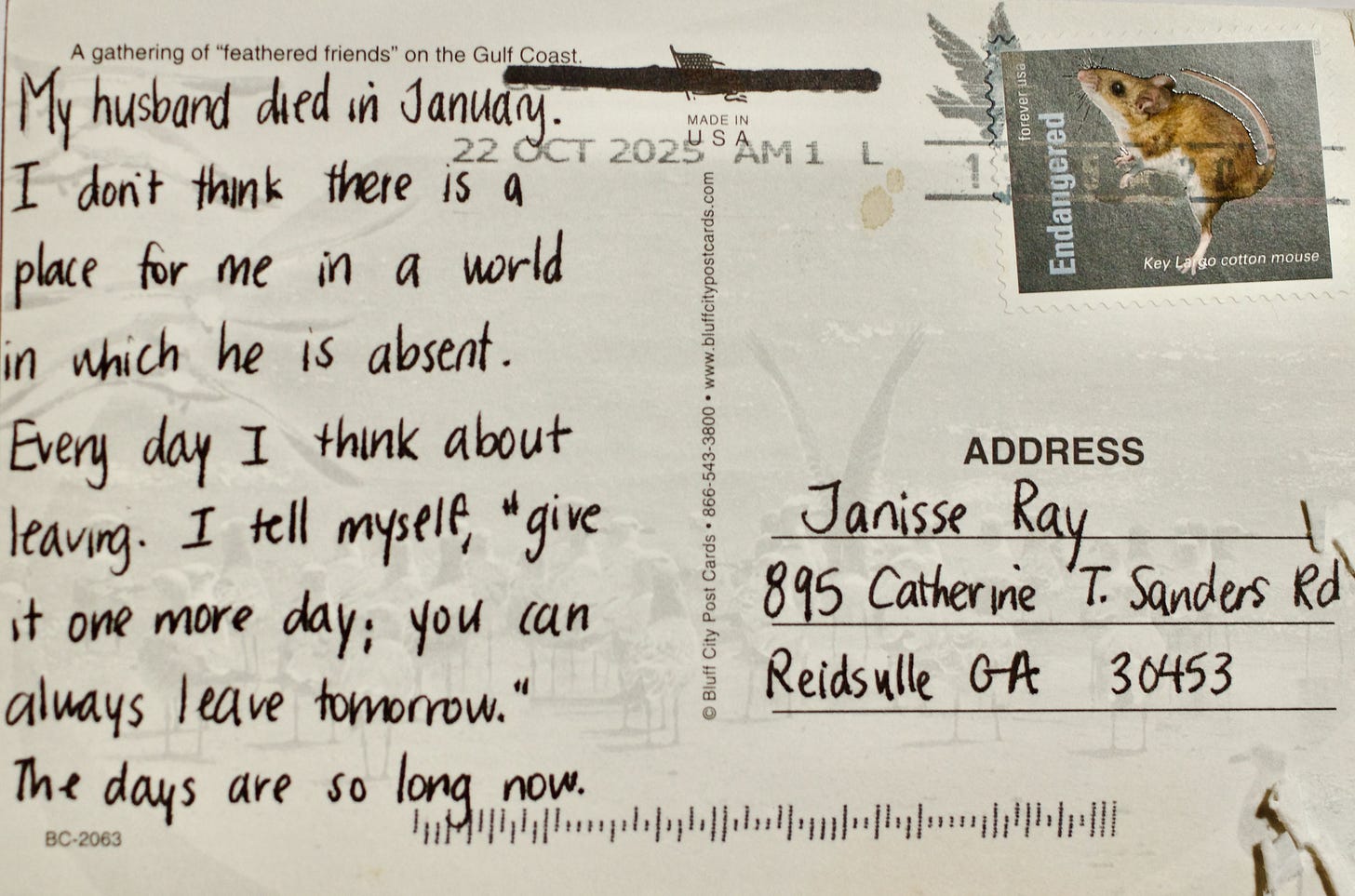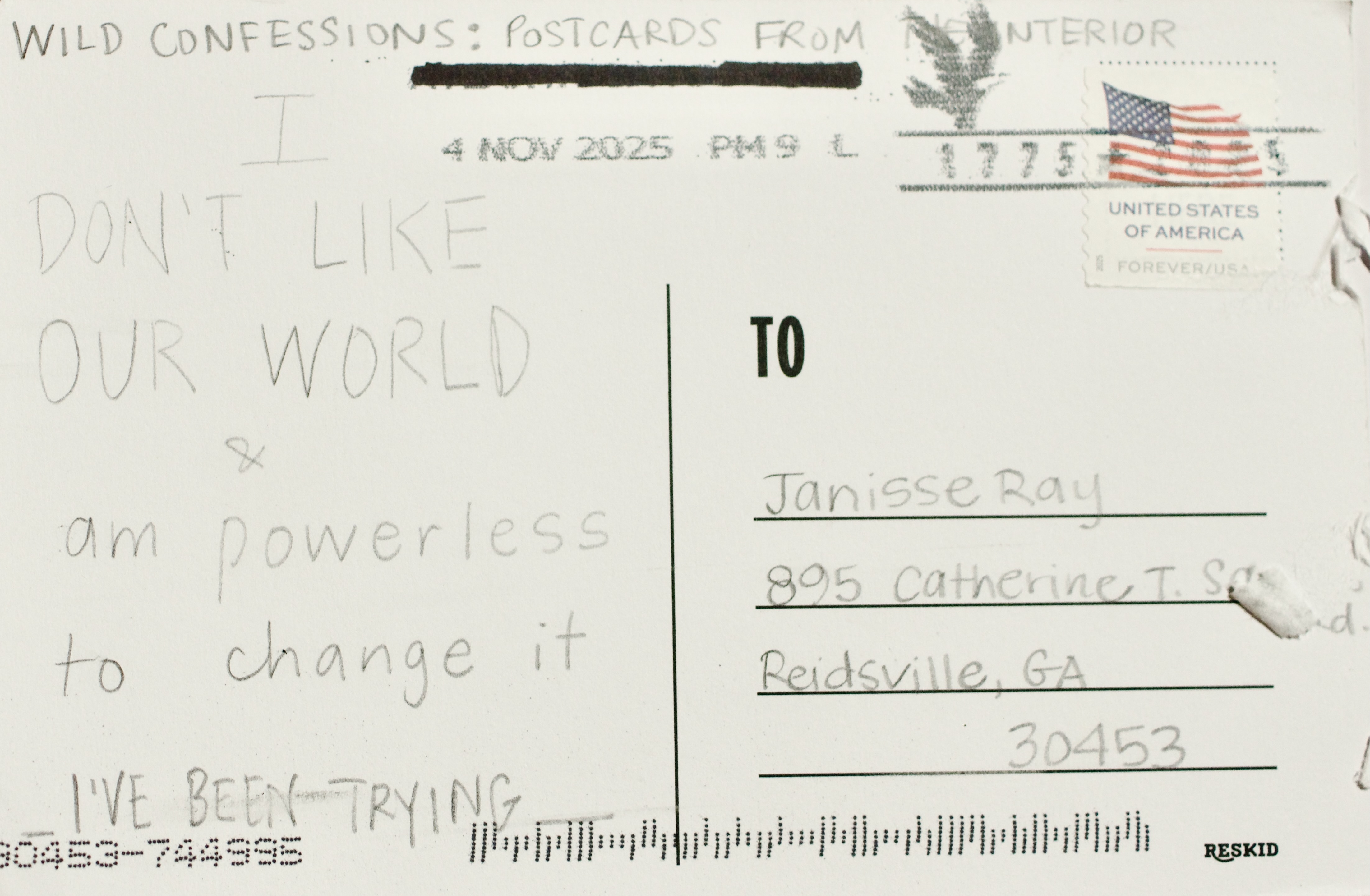 The first postcard to arrive was postmarked Oct. 20. I knew with the first one that the project was going to be powerful.