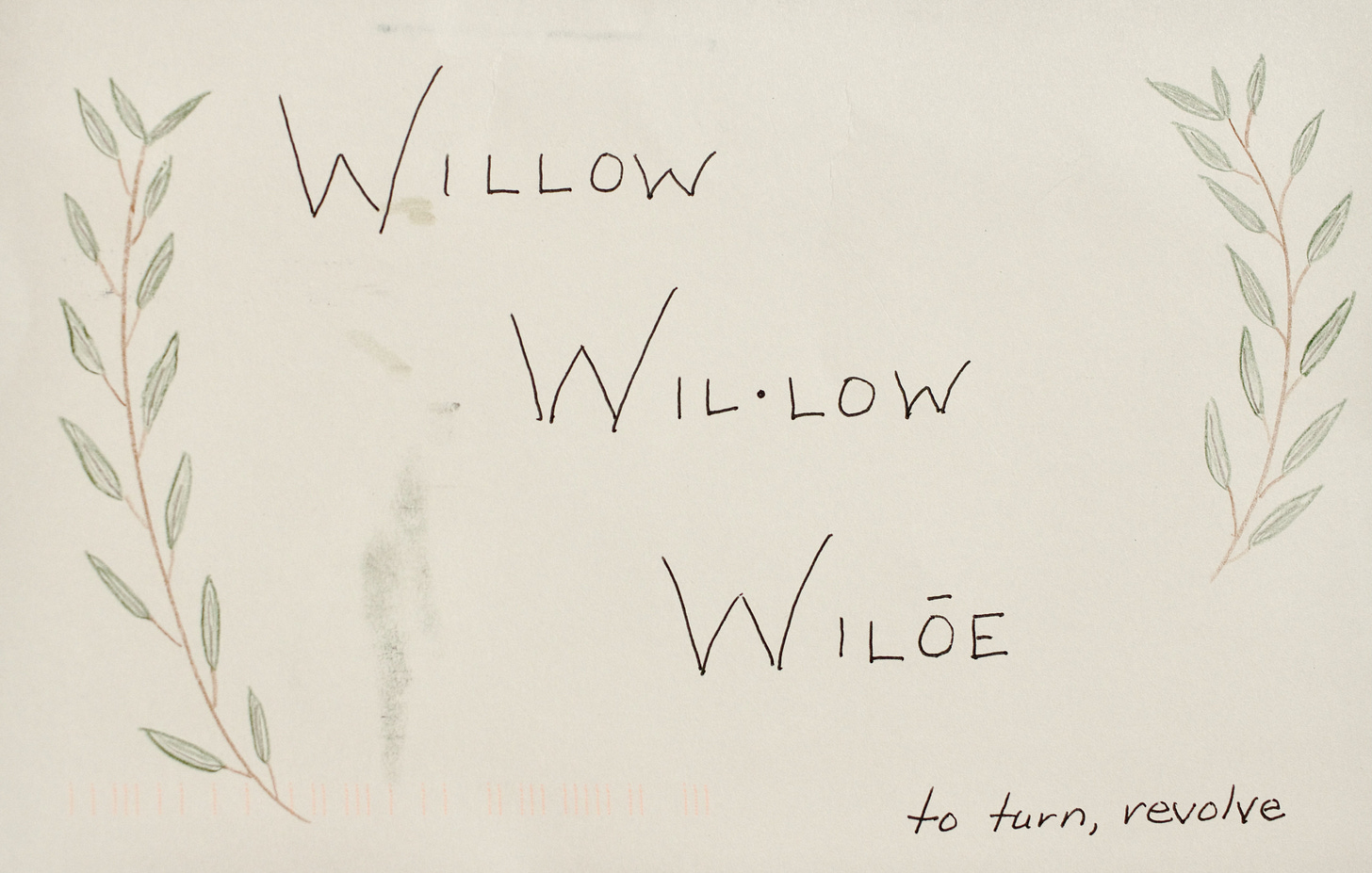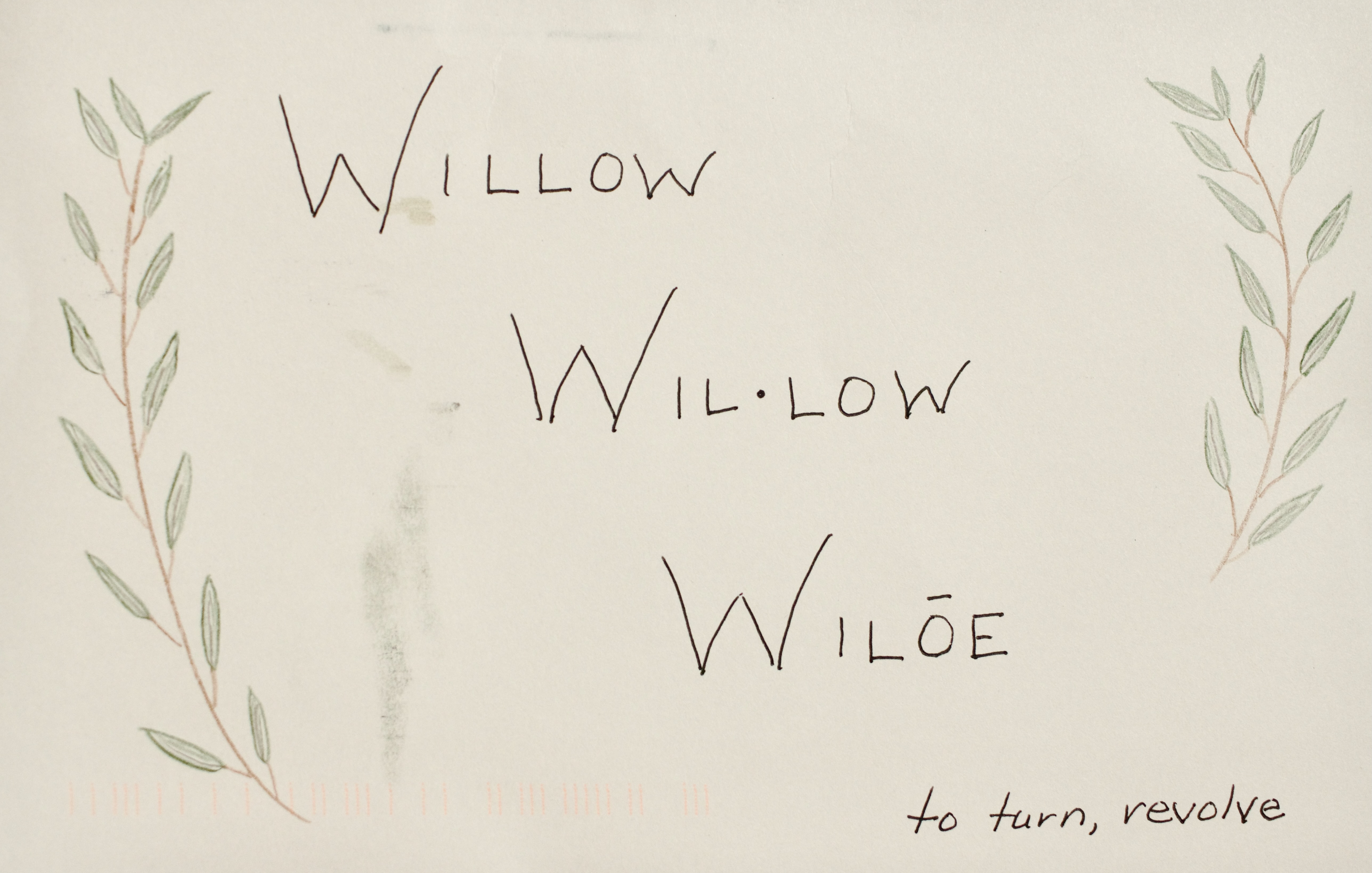 They are the Willow Folk. I walk amongst their almost-grey leaves that whisper against my skin. Narrow sabres on thin, bendy branches pierce my own flexible bark covering with their willow scent. How do I describe the smell they send toward me some days and not others? Piquant, the barest spiced sage, with a hint of jade air and willow sap. The blood of Willow Folk offered, accepted with grace and honor. Sacred silence held within my own blood.